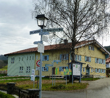 Ortsmittel Kleinweiler mit Wanderwegweiser