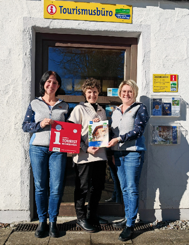 Bürgermeisterin Martina Wilhelm und die Tourismusdamen Nicole Simion und Katrin Elfert freuen sich über die Auszeichnung und dürfen zukünftig mit dem Qualitätssiegel werben.